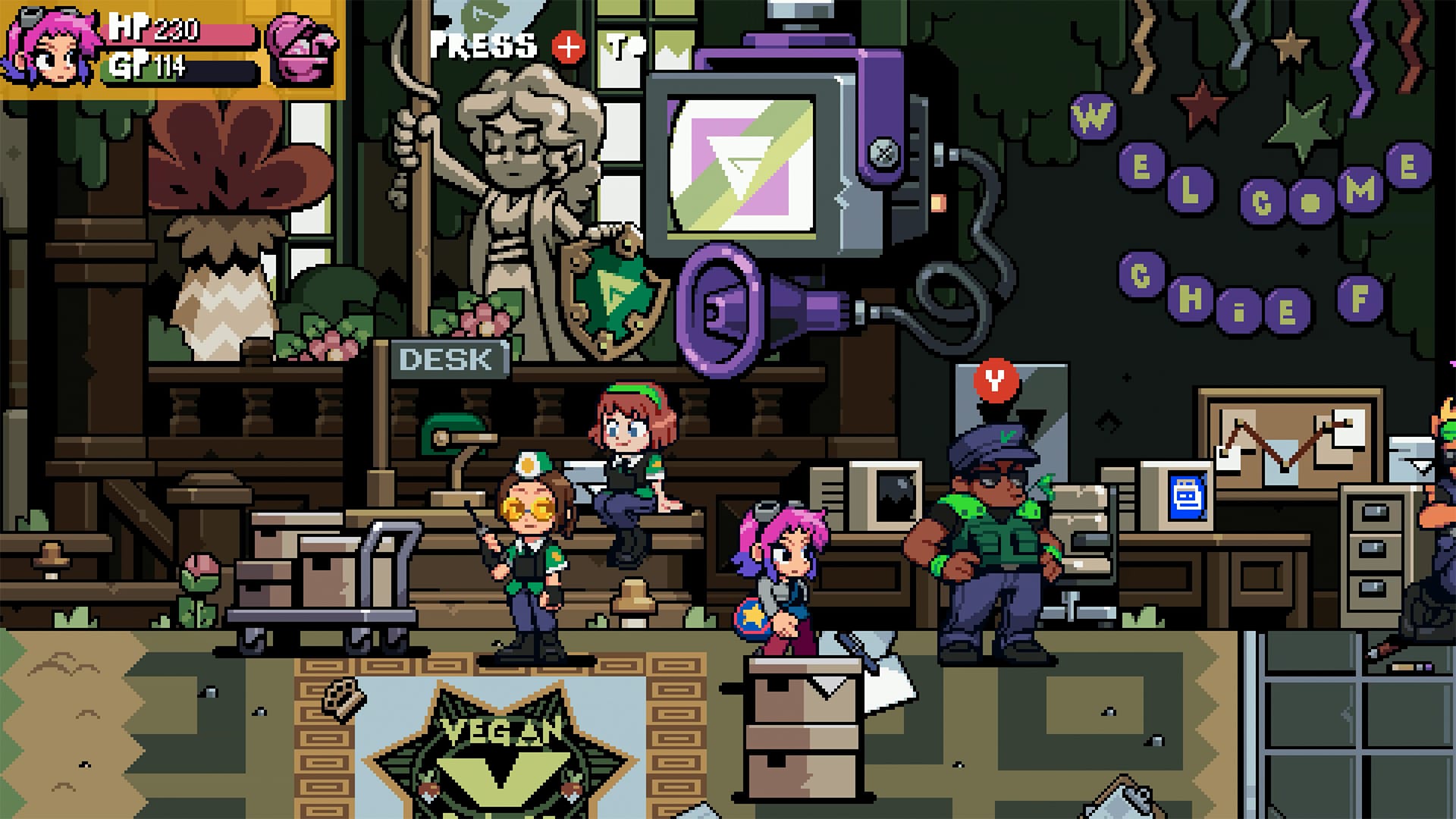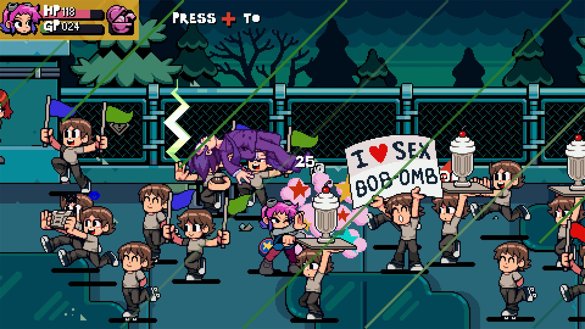 Progression also feels more contemporary. Scott and co. can still headbutt-burst vegans into cash monies, which can be spent on various food items, equipment, and badges to boost stats, and level-up the gang. But unlike its predecessor, EX squashes early frustrations, and keeps you on level footing with later-stage enemies and bosses.